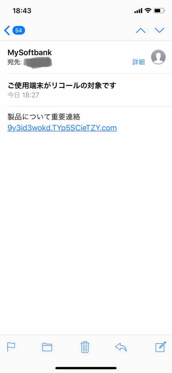 リコール対象、というメール。いきなりの簡単な連絡、冷静に考えればおかしいと思うけど、連絡してしまいそう。