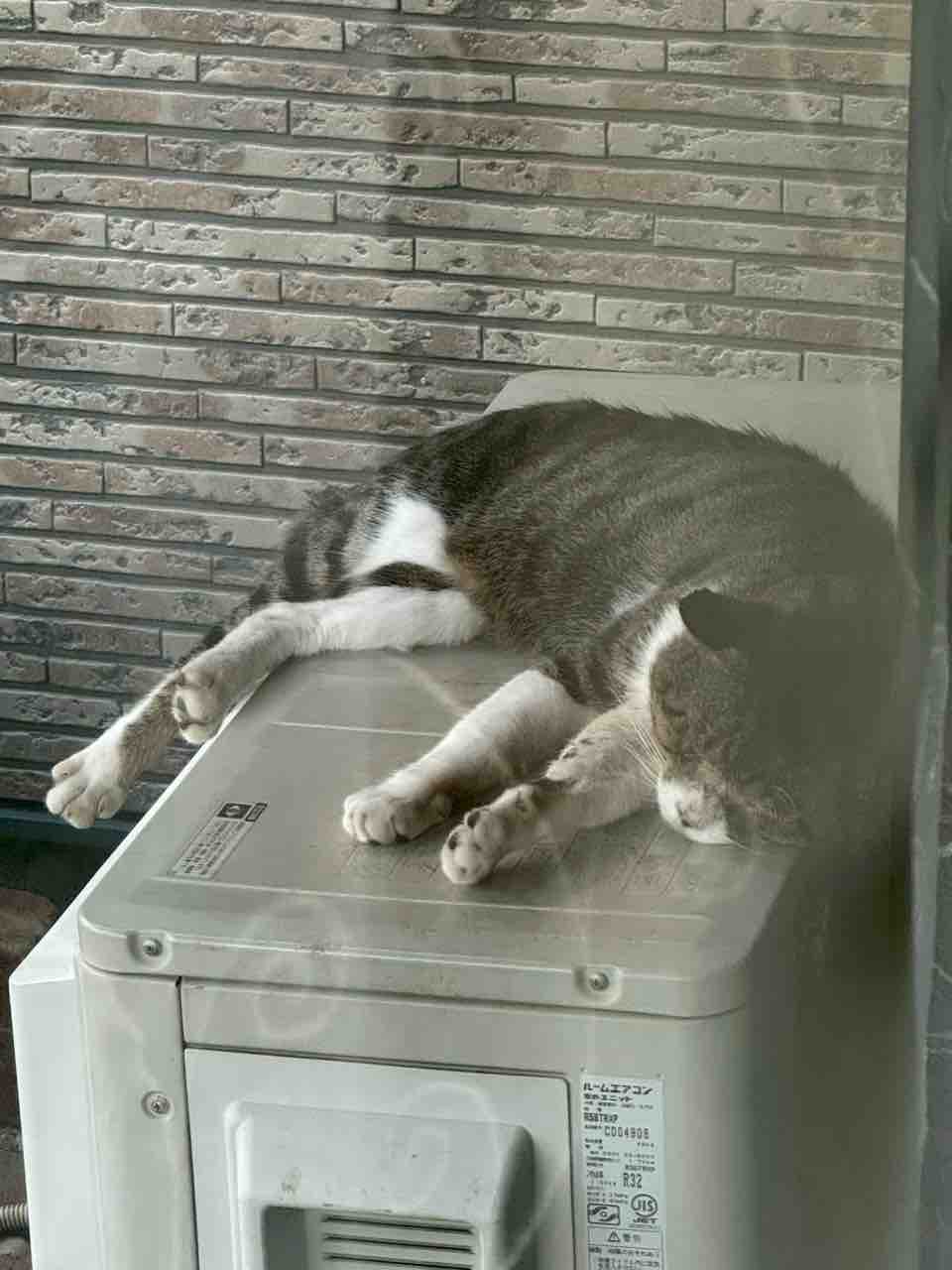 室外機の上は涼しくはないだろうけど、、 生きていくのは大変。