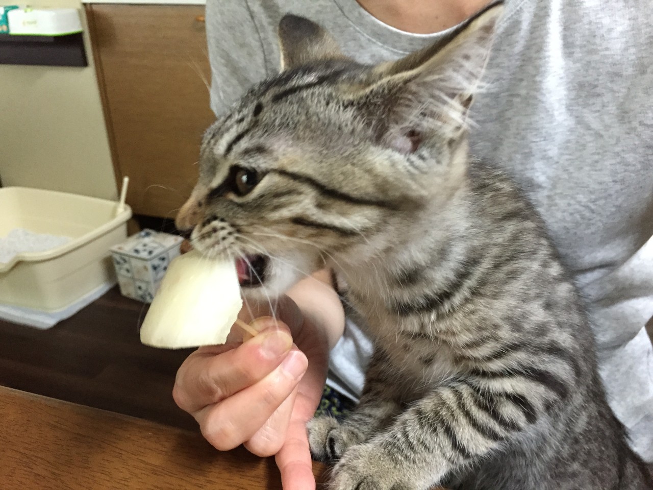 慌てて、フローリングのところに放り出し、ゲロ待ちをすると・・・