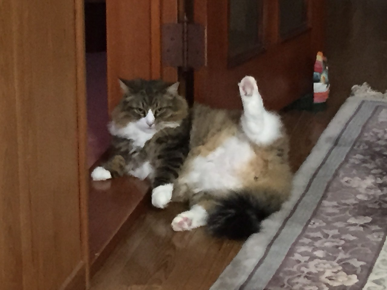 毎回第2弾があるので、じじ坊を抱っこして、第1弾をマタイで別のフローリングへ行こうとしたとき、