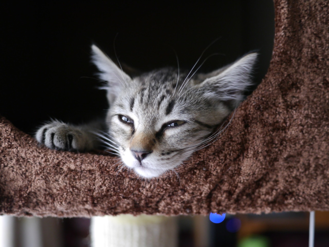 オマケに、キャットタワーに腕を強打。