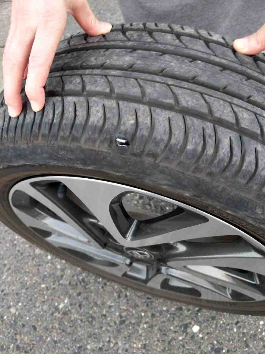 タイヤのショルダーに穴があるため、買い替えることにした。