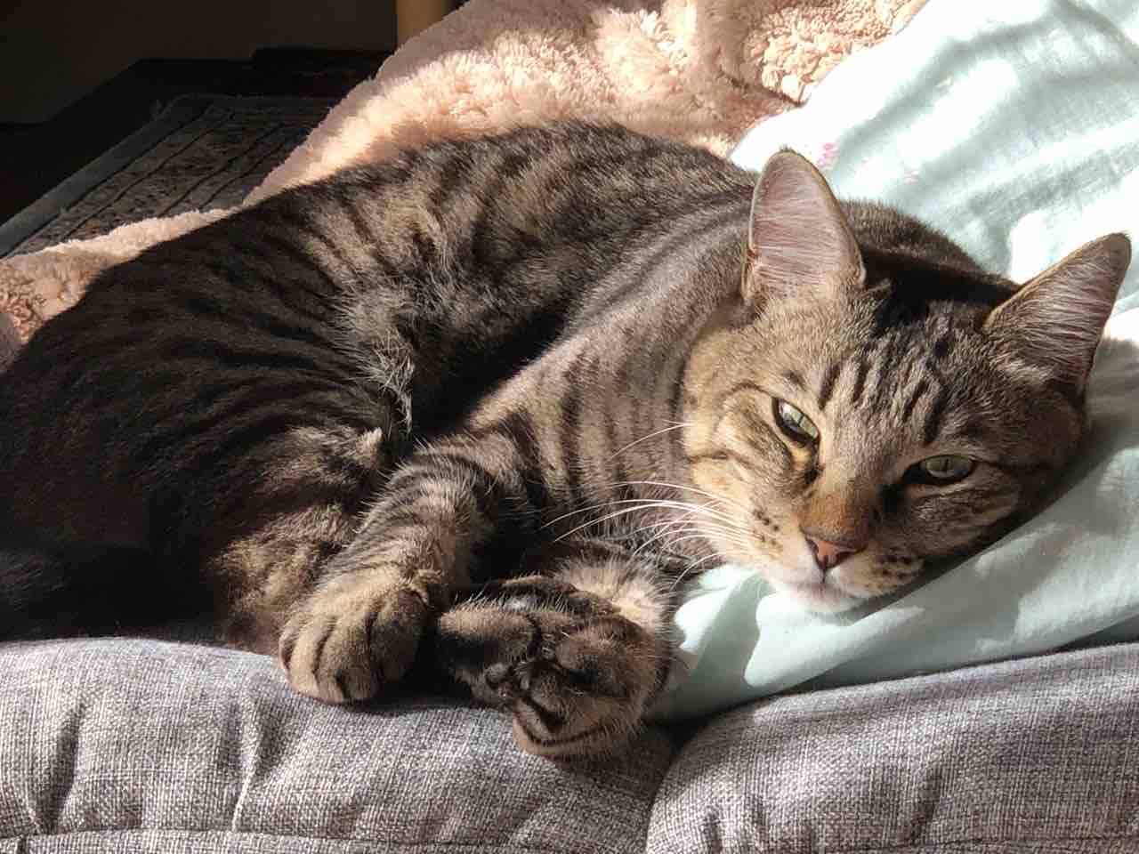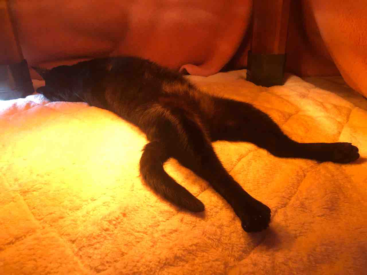 今朝はちょっと暖かい朝だったらしく、思いっきり布団を蹴飛ばしていました。