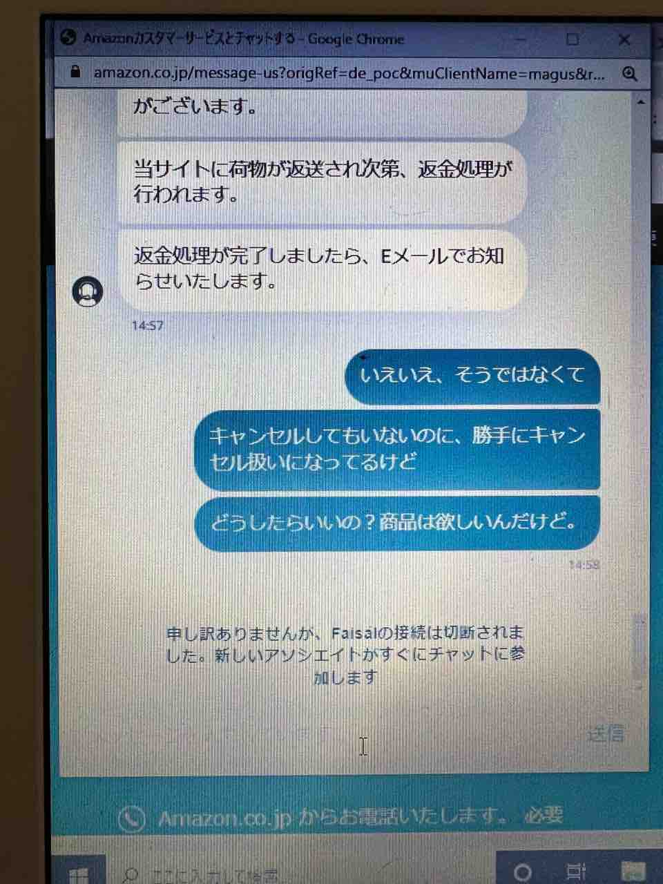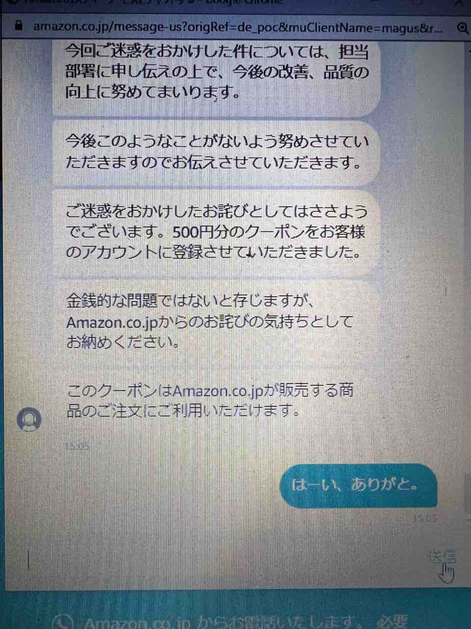 で、密林さんのサービスにチャットで問い合わせてみました。