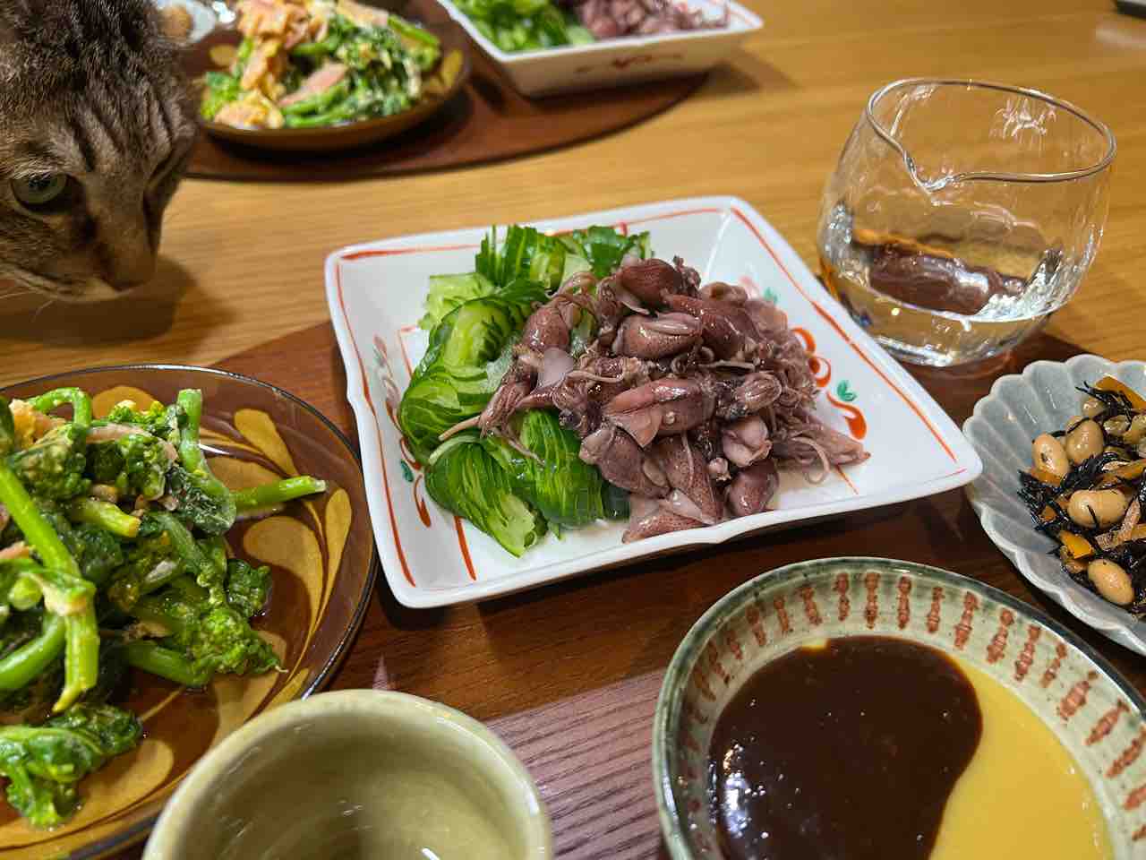 常備菜があったのでちょっとだけ飲もうと、一升瓶を出した。