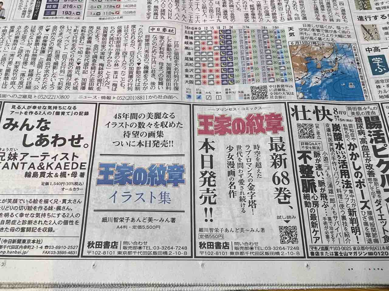 今日の新聞の広告欄で