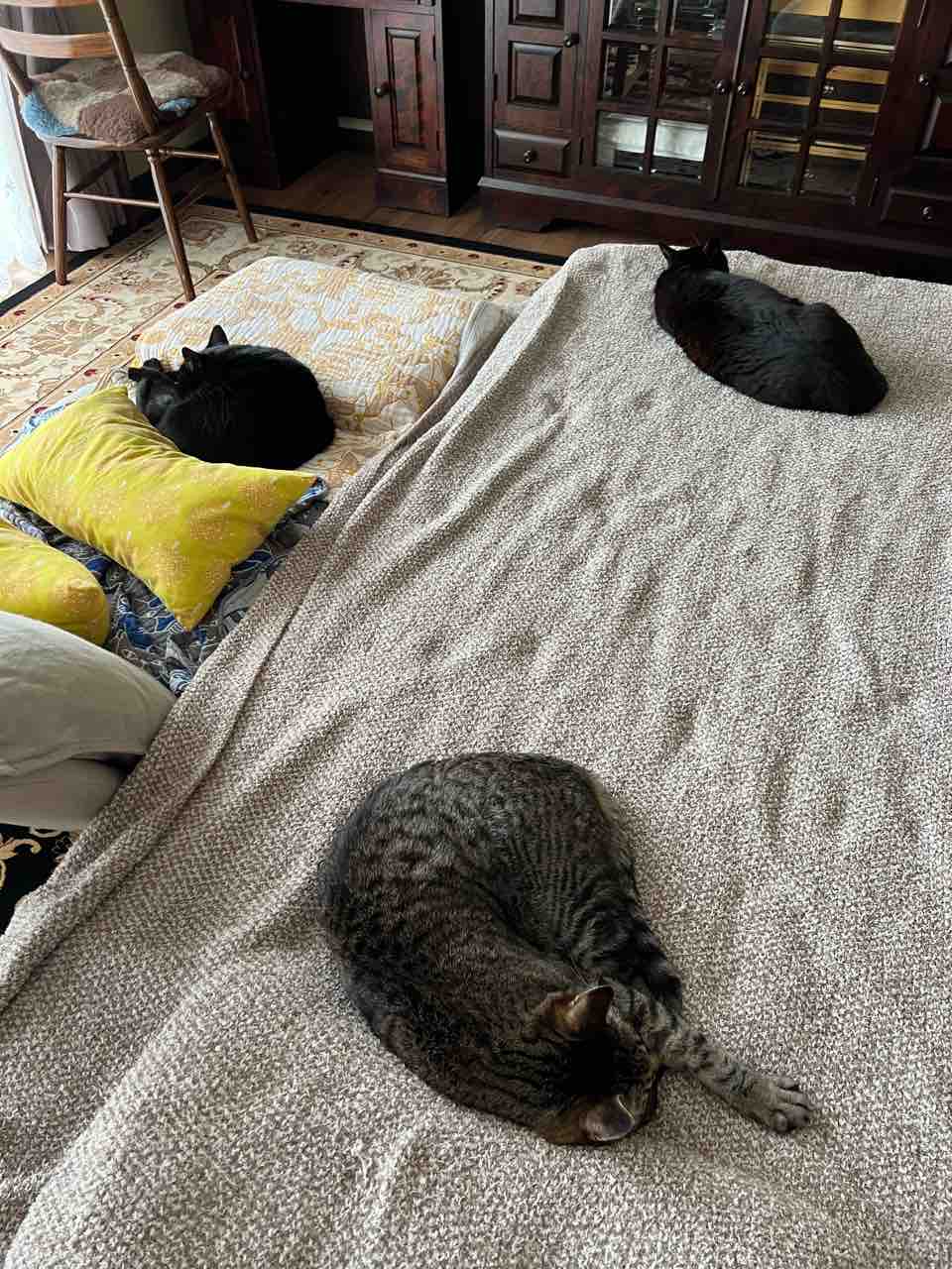 皆が寝てくつろぎ、爪とぎし、ときにはゲロをし。