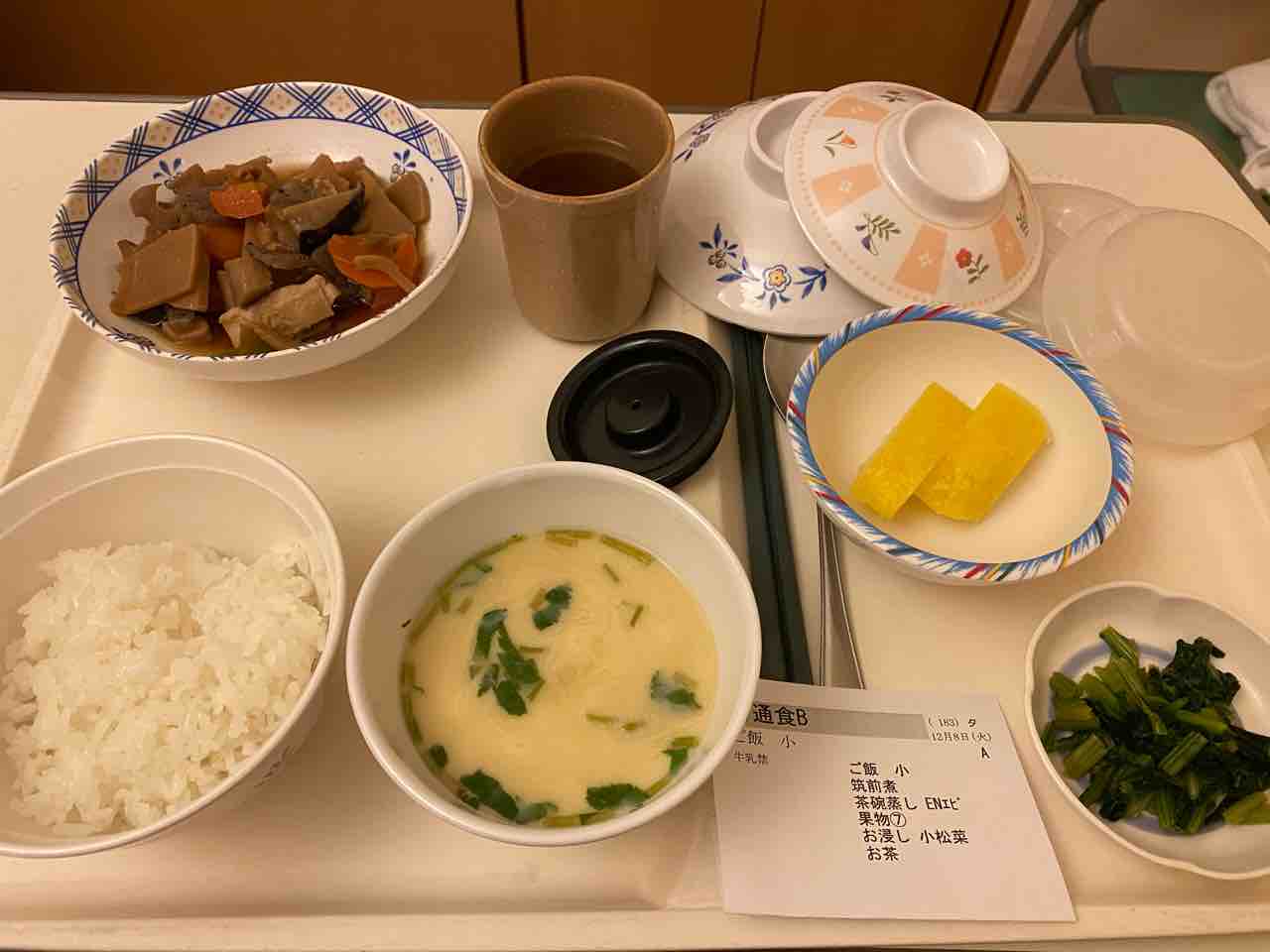 手術の翌日は、朝食が無くて、昼食が5分がゆ、夕食が全粥(結構大盛り)